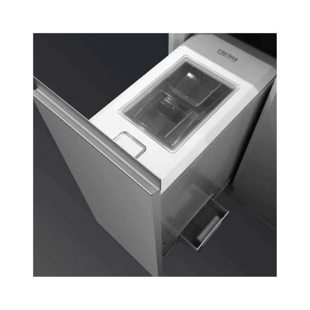 Thương hiệu: Cucina ( phân phối bởi Công ty Häfele Việt Nam ) Bảo hành: 1 năm Thông tin sản phẩm: • Thiết kế gắn với cánh kéo, kèm theo ray trượt giảm chấn • Thể tích lớn, có thể trữ được 30 kg gạo • Nắp nhựa trong suốt. Dễ dàng quan sát lượng gạo còn dư trong thùng • Kèm theo hộp chống ẩm • Khay lấy gạo có thể thay đổi hai bên trái phải • Dành cho tủ 300 mm • Đáp ứng tiêu chuẩn QCVN 12-1:2011/BYT (Quy chuẩn kỹ thuật quốc gia về an toàn vệ sinh đối với bao bì, dụng cụ bằng nhựa tổng hợp tiếp xúc trực tiếp với thực phẩm) và 21 CFR 178.3297 (Quy định của FDA Hoa Kì – Các chất màu dùng cho polymer) • Hoàn thiện: Thép / Nhựa • Chiều rộng lọt lòng: ≥ 264 mm • Chiều sâu lọt lòng: ≥ 550 mm