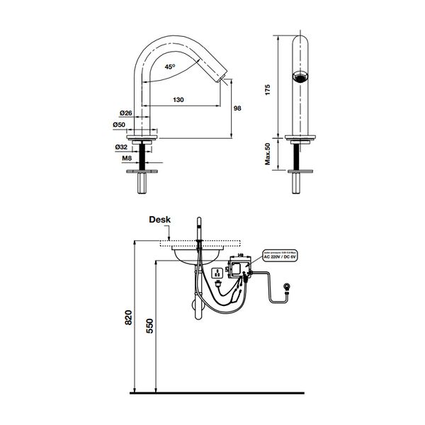 • Vòi cảm ứng• Lưu lượng nước ở 3 bar: 5 lít/phút• Không có bộ xả• Màu sắc: Chrome• Áp lực nước: 0.05-0.8Mpa• Kích thước: 50 x 167 x 175 mm• Nguôn điện: DC 6V & AC220V