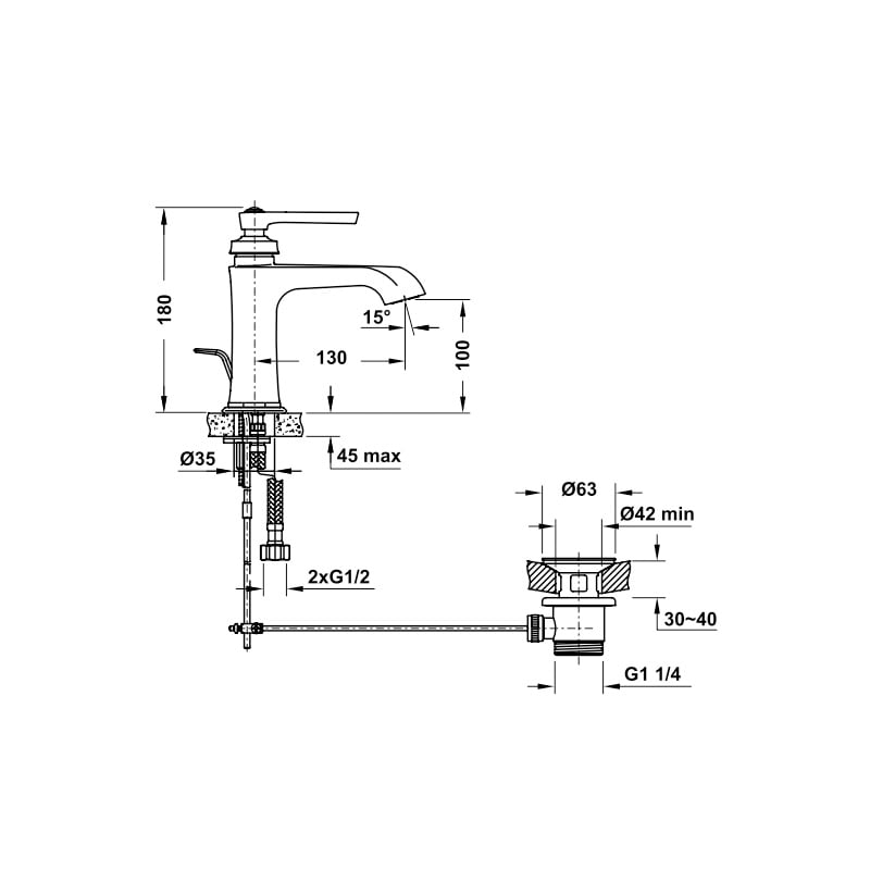 Vòi trộn Kyoto 100 bộ xả kéo màu vàng 589.35.061